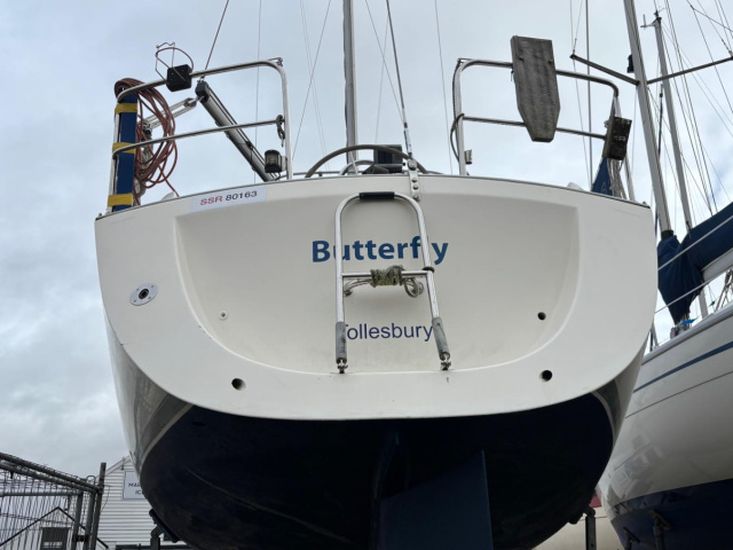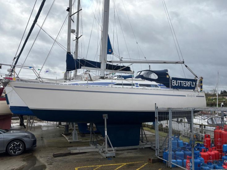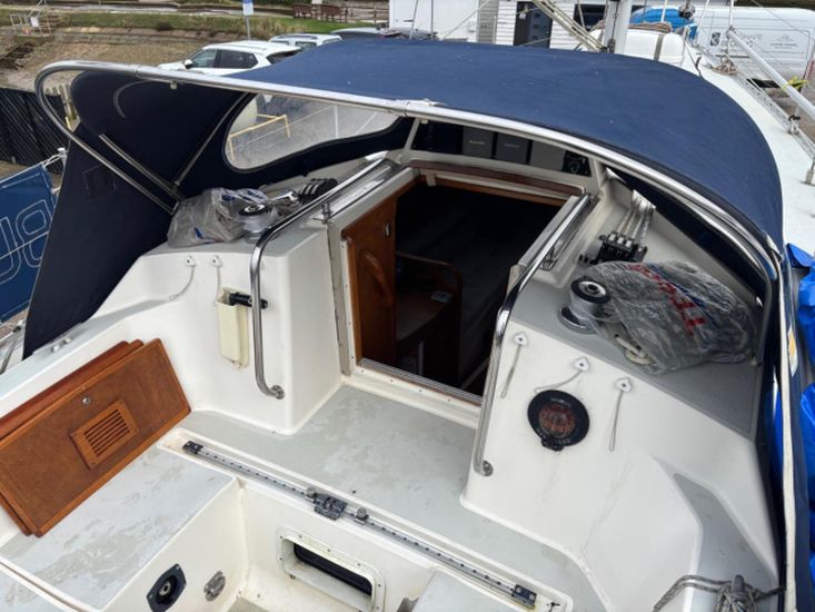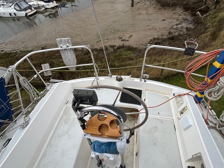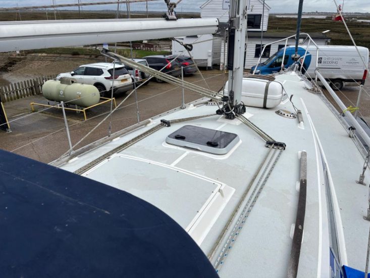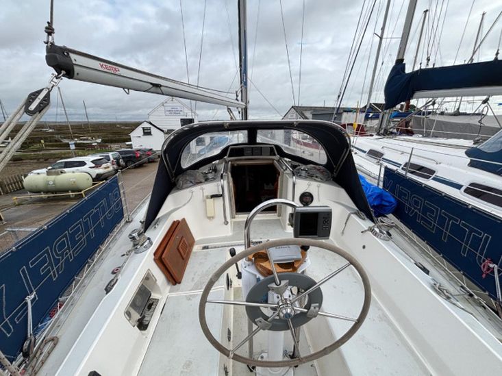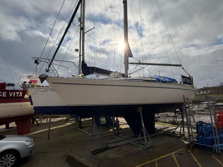Built in 1989. GRP construction with white topsides and superstructure, fin keel, self draining aft cockpit with wheel steering, masthead Bermudan sloop rig and 6 berth internal layout in 3 cabins with around 6ft headroom. Epoxy coated below the waterline including keel. Antifouled February 2026. Keel studs, nuts and backing plates cleaned and painted 2024/5.