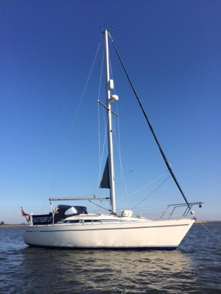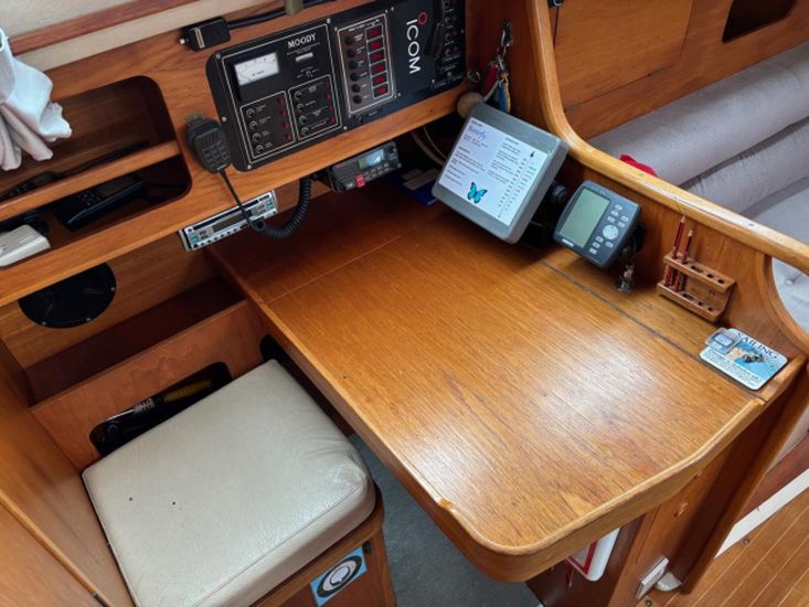 1989 Moody 31 Mk II, wheel steering, Volvo Penta 2003 three cylinder 28hp inboard diesel with MaxProp feathering propeller, in-mast furling mainsail, Eberspacher heating, hot water, shore power, April 2025 survey, stainless steel standing rigging renewed in 2025, autopilot, radar and plotter too!