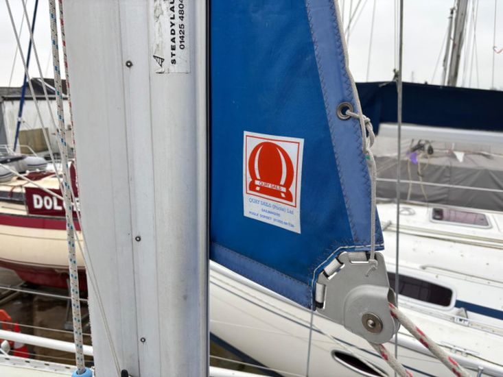 Behind furling mainsail (Quay Sails - Maxi-Roach fully battened). Genoa roller reefing system with furling No 1 Genoa. Rotostay furling. Cruising chute or spinnaker. Alloy mast and boom by Kemp. Stainless steel standing rigging renewed in 2025.