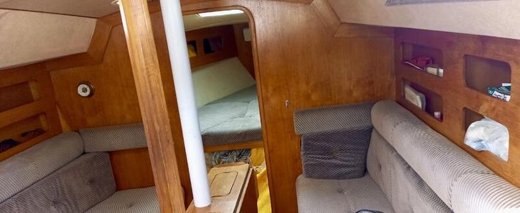 - Cushioned upholstery in saloon and cabins