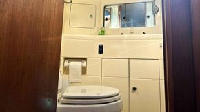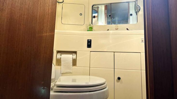 Heads: Dometic Master Flush electric toilet (2019), basin, shower