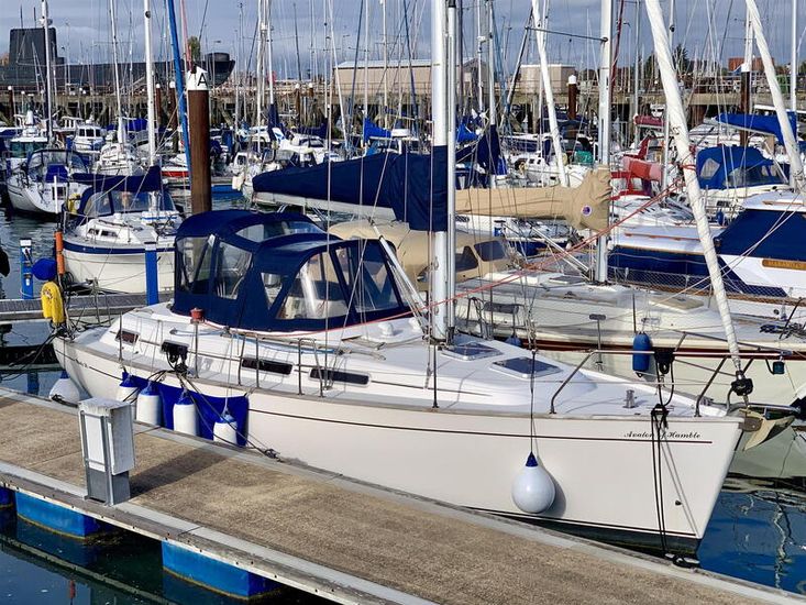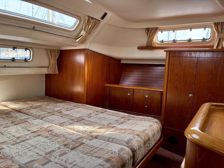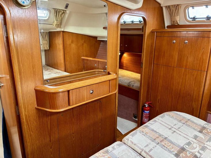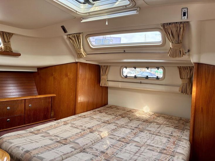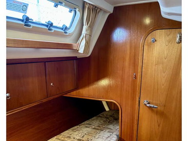 Designed by Bill Dixon and built by Marine Projects, “Avalon of Hamble” is an exceptionally well-specified example of the sought-after Moody 36 Centre Cockpit and one of just fifteen rare bilge keel versions. Drawing only 1.2m, she offers outstanding shallow-draft cruising capability, ideal for coastal exploration, creek crawling and safe drying out, while retaining the solid, sea-kindly performance Moody yachts are renowned for. Her centre cockpit with wheel steering ensures secure, comfortable short-handed sailing.