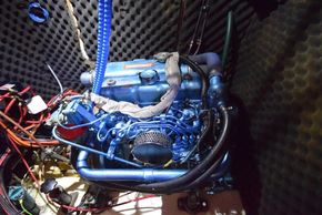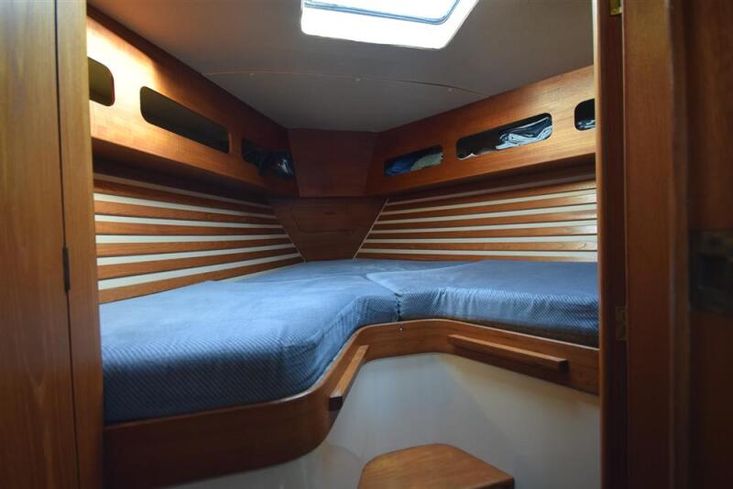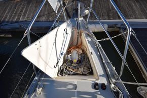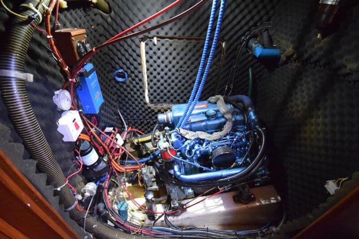 Located in insulated compartment under the cockpit, Thorneycroft T80 four cylinder 35hp diesel engine. Freshwater cooled via heat exchanger. Shaft drive via P-bracket to fixed two-blade propeller. Rope cutter. Electric start. Single lever control. 204 litre fuel capacity. Cruising speed under power approx. 6.5 knots. The engine has been regularly serviced and has a history of good maintenance. Vetus bow thruster.