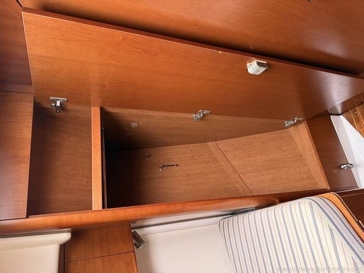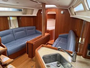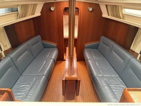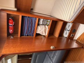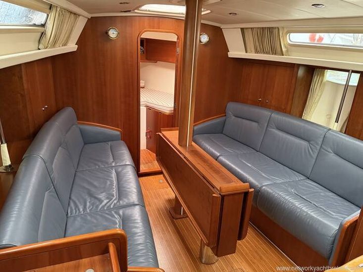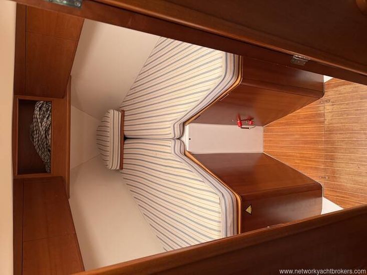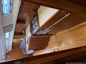 She benefits from a proven Yanmar 56hp diesel engine, bow thruster, warm-air diesel heating, generous tankage and a comprehensive inventory of navigation and cruising equipment, making her particularly well suited to longer passages and easy short handed handling. The in-mast reefing mainsail, all lines led aft, electric windlass and well laid out cockpit further enhance her ease of use.